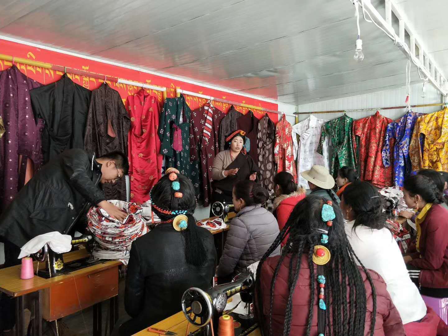 江达县格桑花民族服饰加工销售有限责任公司内,负责人拉措与员工交流。(受访者供图)“要把返乡创业青年的冲劲带动起来。”西藏云上企业管理服务有限公司的创始人加措达布说,作为返乡创业的青年团队将继续深耕自媒体,用镜头展现家乡之美,吸引更多游客走进雪域高原。
