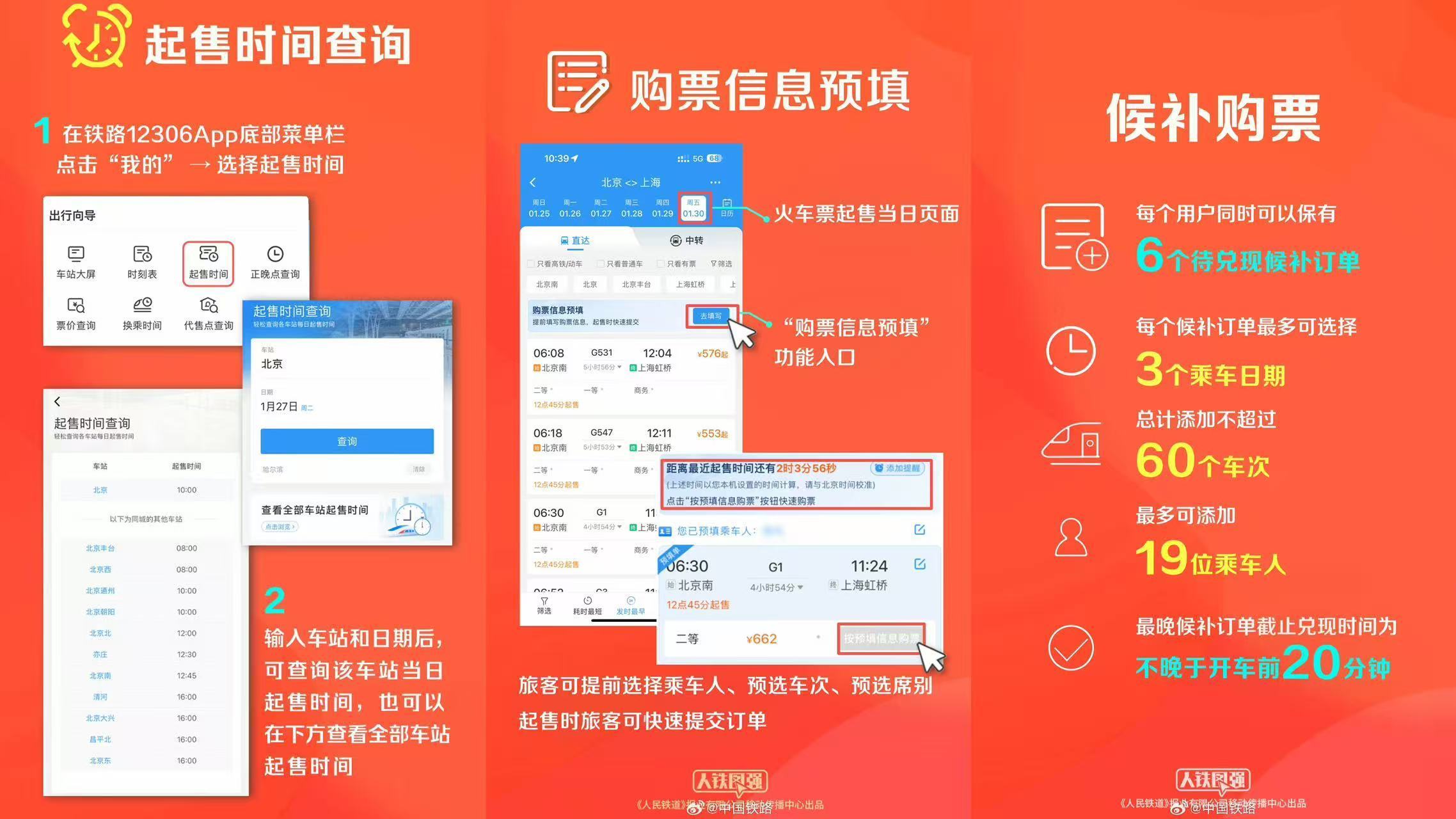 2月1日:开售春节假期首日(2月15日)火车票